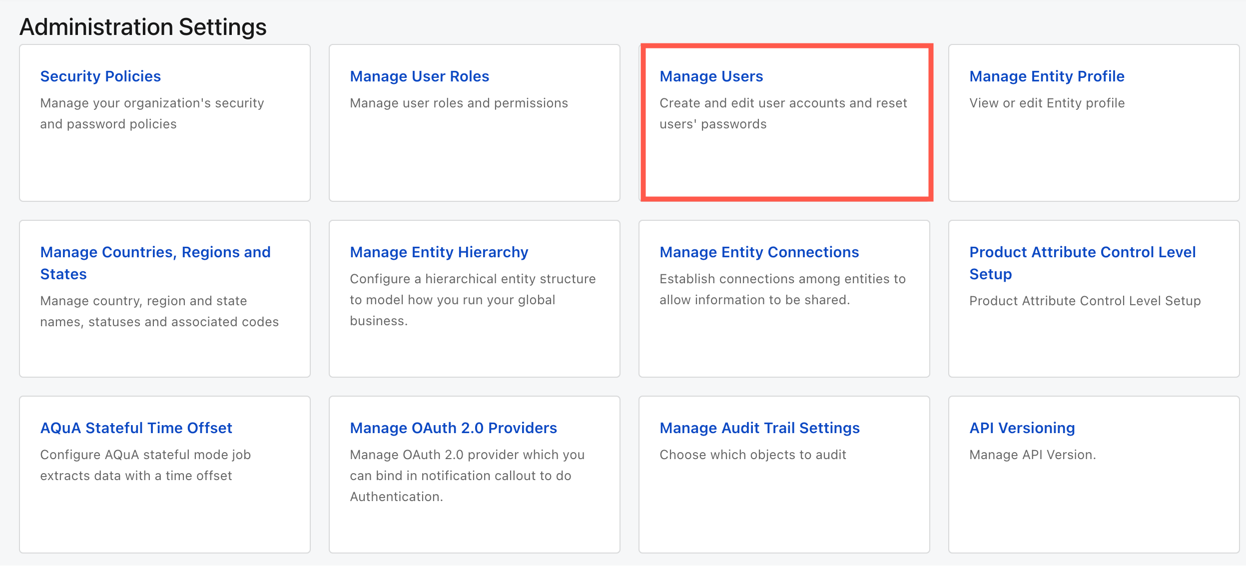 You or your administrator should click Settings > Administration, then click the Manage Users option.