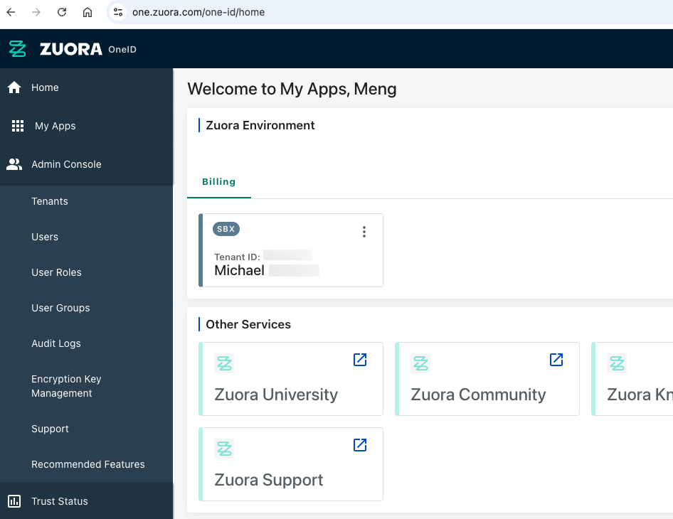 You should have the access you need for your API and SDK based development. Our client libraries for Java, Node.js, Python, and C# are available for your use. If you’re new to Zuora you might find the Billing FAQ and Payment FAQ answer many of your questions. Also you can access our Support team by clicking the question mark next to the green circle with your initial that we introduced in Step 3.
